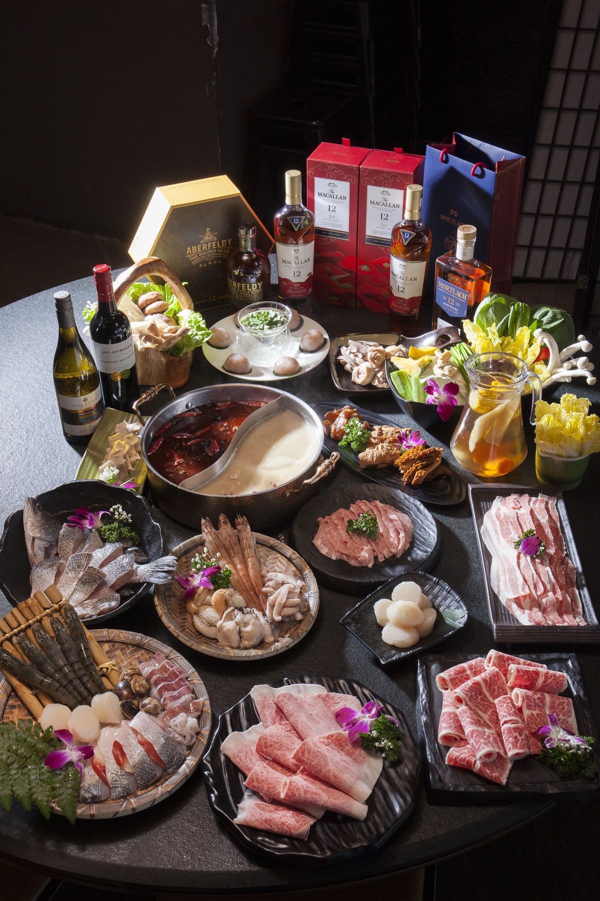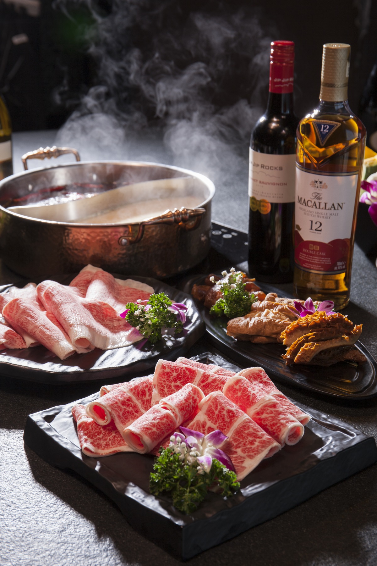 大啖火鍋除了可搭配葡萄酒之外,以滿溢花果香、蜂蜜、橡木桶甜美風味的威士忌,最能佐搭出湯頭、好肉與美酒的三重享受。 「撈王」是大宴小聚的年節美食目的地,「台灣人的過年餐桌酒」麥卡倫雙雪莉12年限量禮盒以「金牛賀歲」為靈感設計,以成雙成對象徵和諧與吉祥,帶有滿滿的福氣寓意,左右雙版本拼接成一幅迷人的斯貝賽地景藝術,風味是香草卡士達醬、太妃糖蘋果等甜美口感,佐搭撈王主打「日本黑毛和牛A5上腰後脊蓋肉」、「美國Prim去骨牛小排」等頂級牛肉,蘸取撈王自家特製醬油,讓鮮鹹香美的醬味與雪莉桶不斷延長味覺的感動。 滷牛筋牛肚與各種頂尖牛肉部位,搭配麥卡倫雙雪莉12年與卡本內蘇維翁紅酒,各有不同滋味風情。